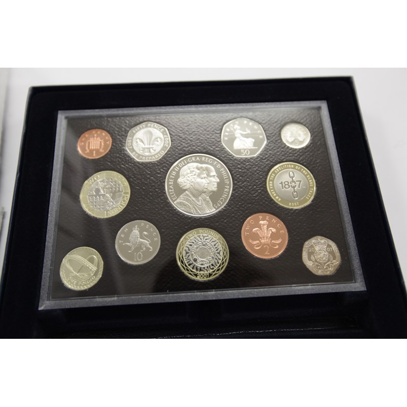 Cased Silver Proof coinage including I O Man £1 x 4, a round pounds set. A Jersey £1 1990, frosted proof Penny Black. An I O Man 50p piece, of 1984, a Jersey 1993 £1 piece. Queen Mother £5 piece dated 2000, also a Proof UK set 2007. A 1980 Proof Crown, 2 x Maria Theresa Thalers. Mostly with related certificates being present.