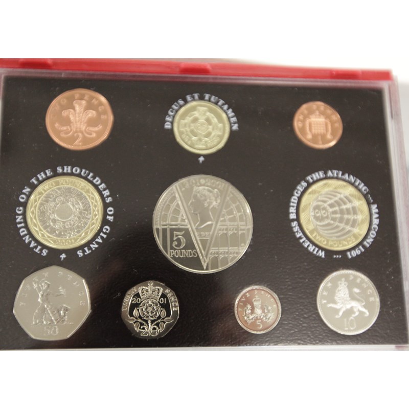 A cased 2000 Millenium Proof De-Luxe year set (10), with certificate present. Another of 2001, again with certificate present. 1986 I O Man World Cup Proof set, with certificate of issue. Various GB & NI year sets, from 1970-1982 (12).