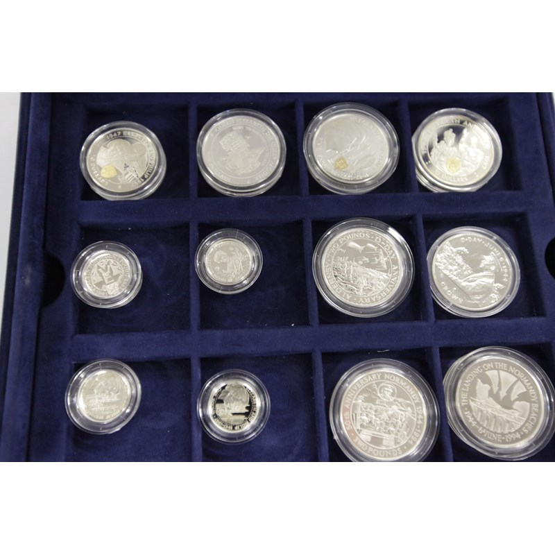 CASED SILVER PROOF COMMEMORATIVES. Struck to celebrate the anniversary of the D Day Landings and other WW11 actions. In £2-£1-50p denominations, also Marshall Islanders set. (24)