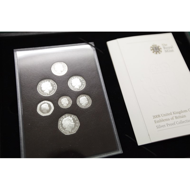 5 1999, etc. Cased 2008 Silver Proof Emblems of GB set. (7). All with certificates present.