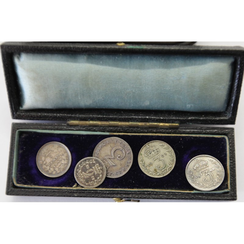 Including a 1762 George 111 3d piece, an Elizabeth 1 'Rose' 6d dated 1573. A George 111 3d dated 1762, a Victorian Crown dated 1891. A Victoria Maundy 2d dated 1851. A Maundy Coin case dated 1897, two silver New Year 1790 'Patrons of Virtue' medallions, etc