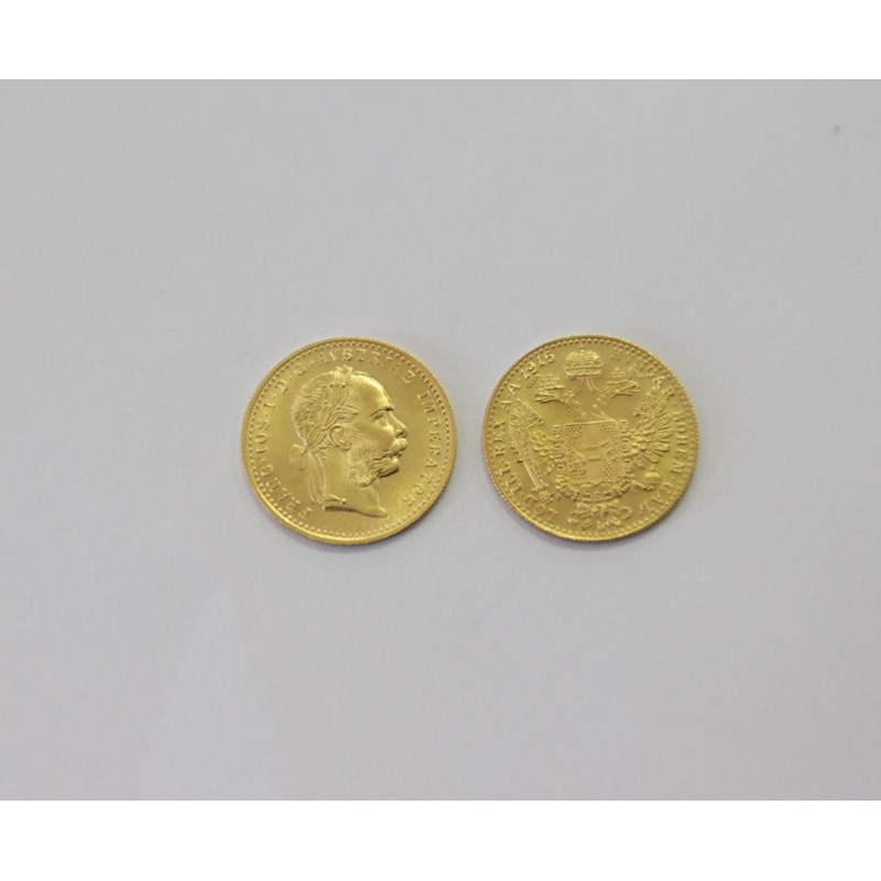TWO RESTRIKE DUCAT GOLD PIECES. Two 1915 dated restrike Austrian One Ducat pieces, of Franz Joseph.