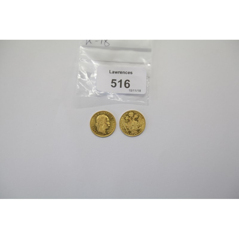 TWO GOLD ONE DUCAT PIECES. Two Austrian 1915 dated restrike One Ducat pieces, of Franz Joseph.