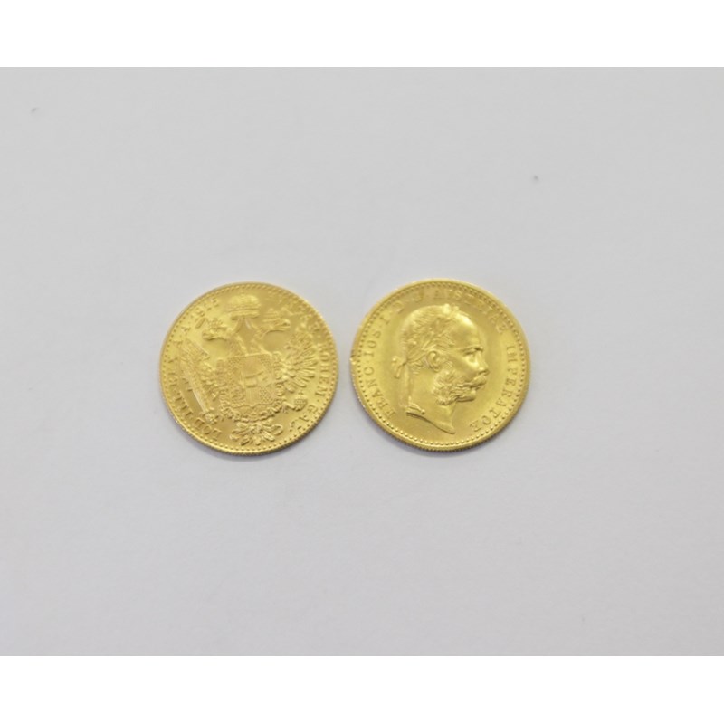 TWO GOLD ONE DUCAT PIECES. Two restrike 1915 dated Austrian One Ducat pieces, of Franz Joseph.