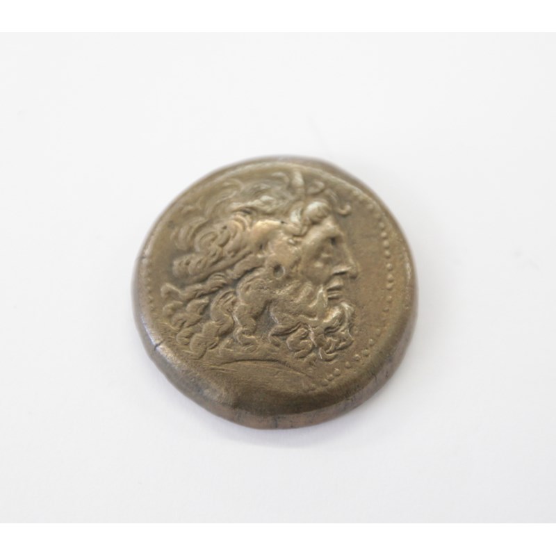 AN 8 OBOLS PIECE. Minted between 246-221 BC, under the reign of Philip 111. The head of Zeus with eagle standing on a thunderbolt, with 'E' between talons. 71 grams.