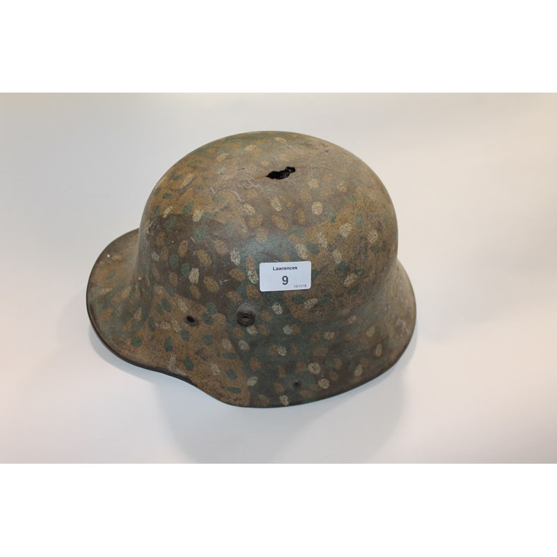 In camouflage finish as brought home from the Gt War, lacking any of its liner etc. Shell damage has left a hole in the skull, otherwise in good condition.