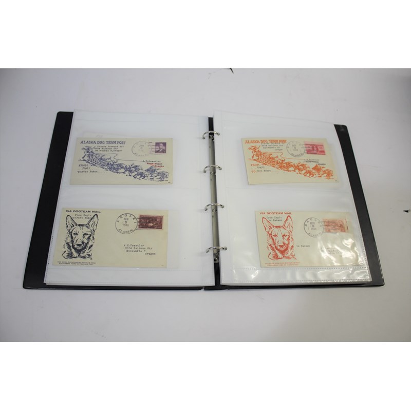 a mixed lot including 3 albums of Alaska Covers from the 1940's to 1960's (including Via Dogteam Mail, Alaska Dog Team Post etc), Belgium stamps in albums and folders (19thc Railway Parcel Cancellations, used stamps, covers etc), and various examples of GB 1d red's in folders and some loose sheets.
