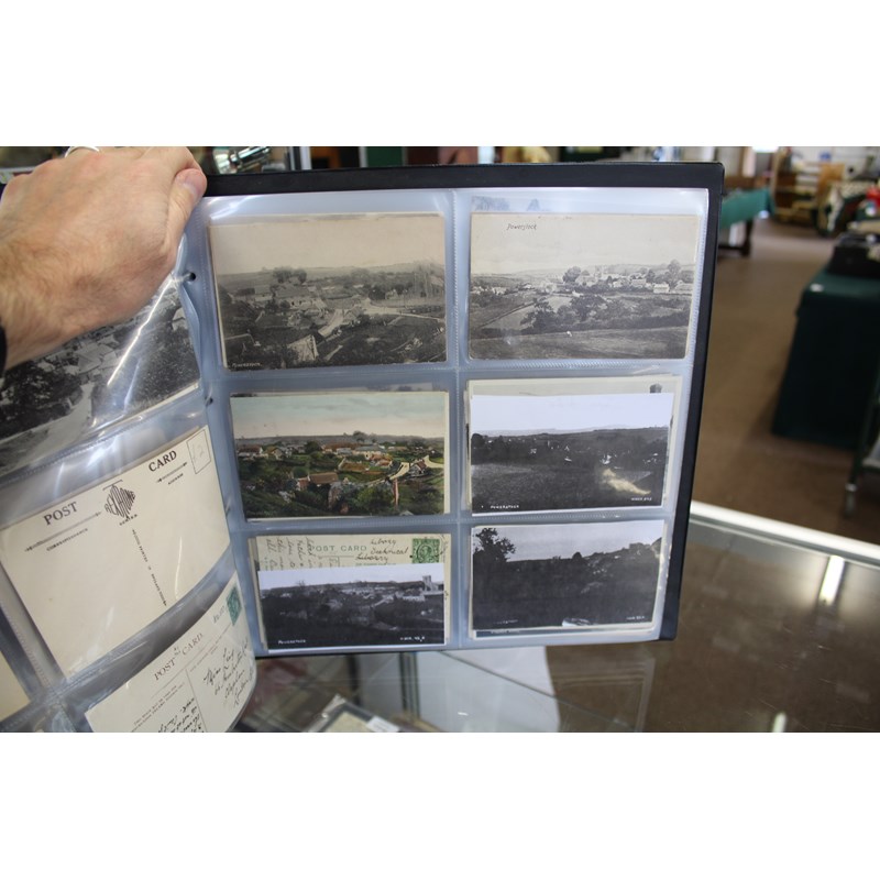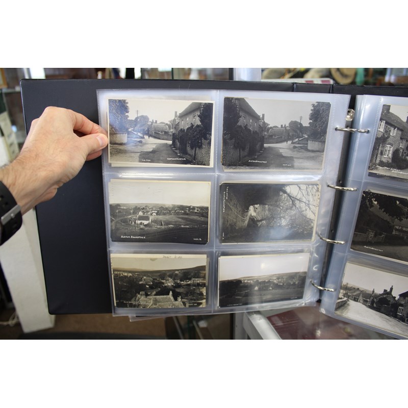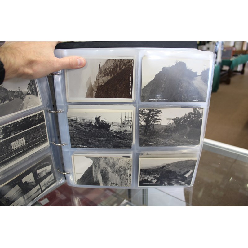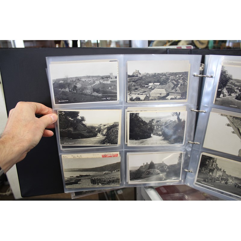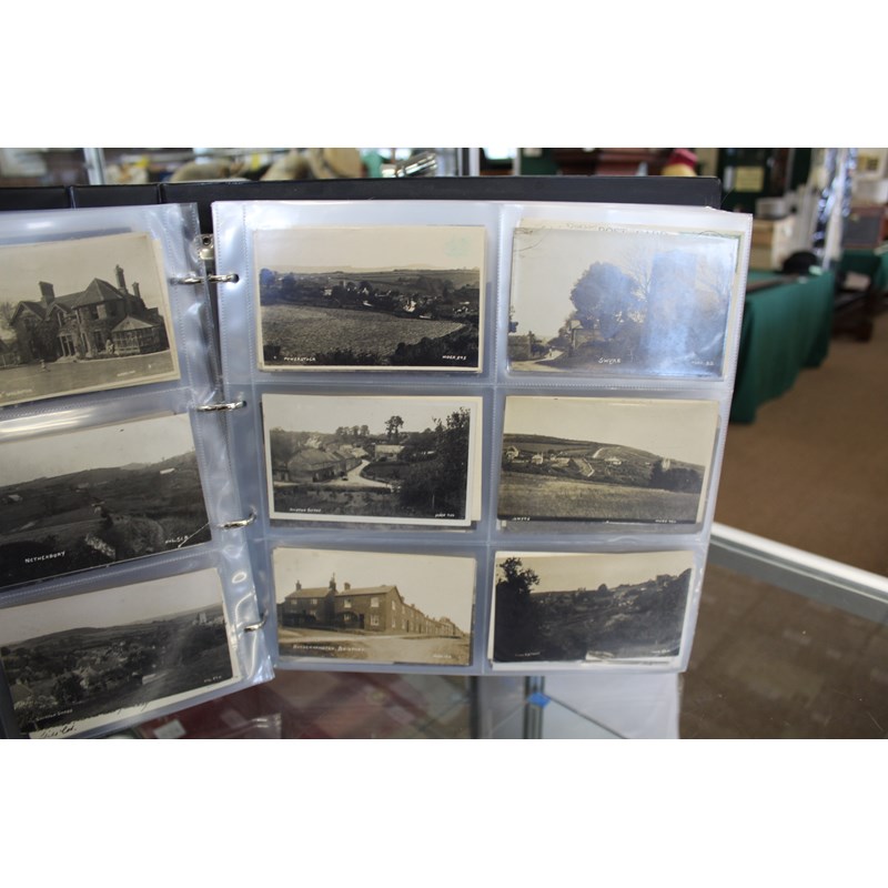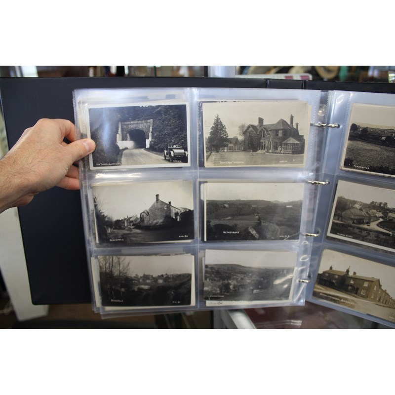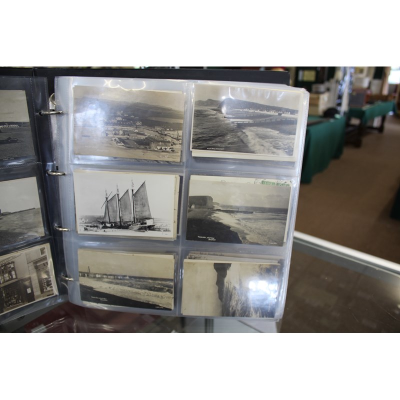 a large album of approx 500 local postcards, including West Bay (various), Bradpole, Netherbury, Bridport (various), Shipton Gorge, Charmouth (various including Coronation decorations 1911), Puncknoll, Walditch, Stoke Abbott, Powerstock, Chideock (various), Seatown, Burton Bradstock (various), Beaminster, Toller, Eype (including SS Victoria passing Eype), Monkton Wyld, Swyre, Loders, Bothenhampton, Broadwindsor, Symondsbury, and many more. Also with some local photograph postcards (various groups, children etc), many postcards by Claud Hider, Bridport.