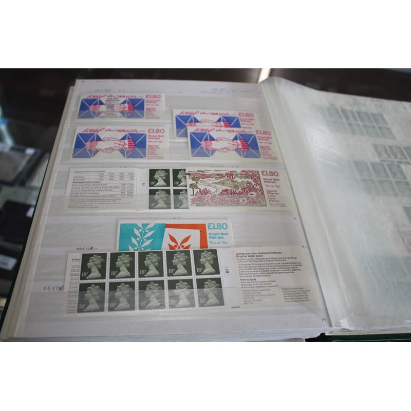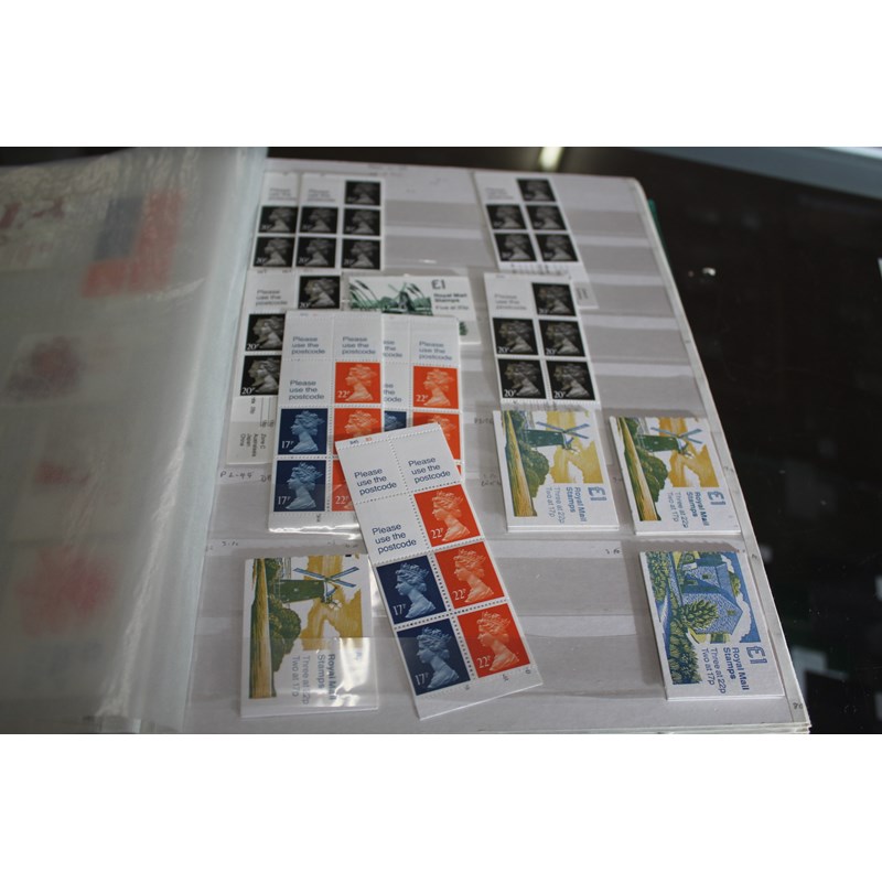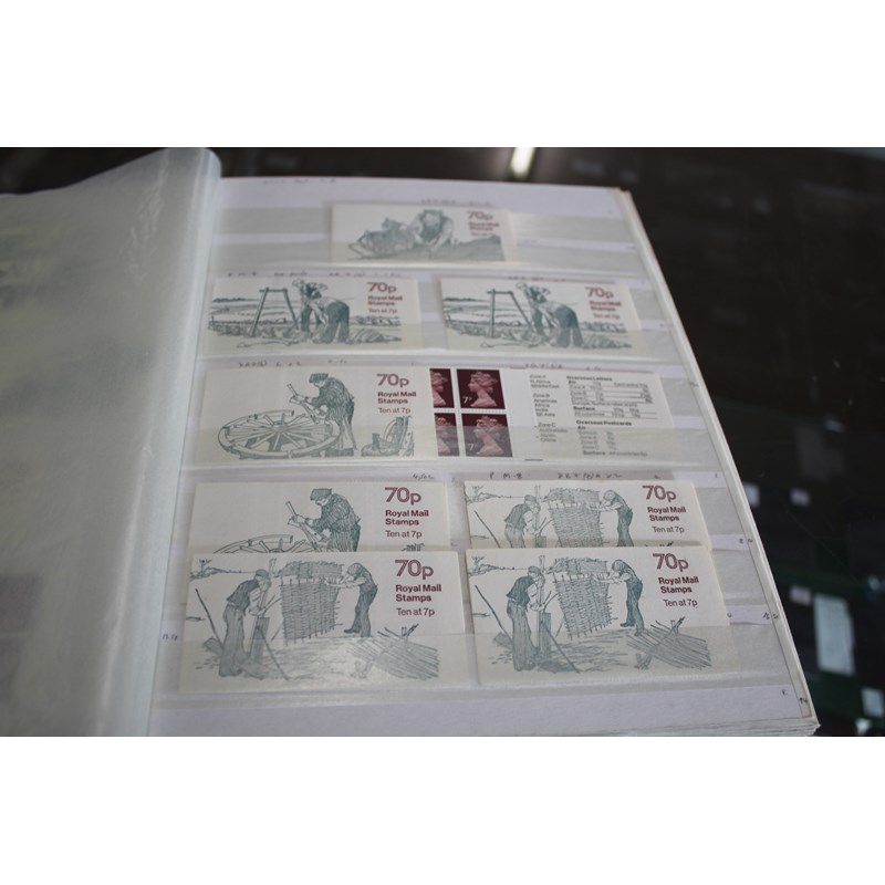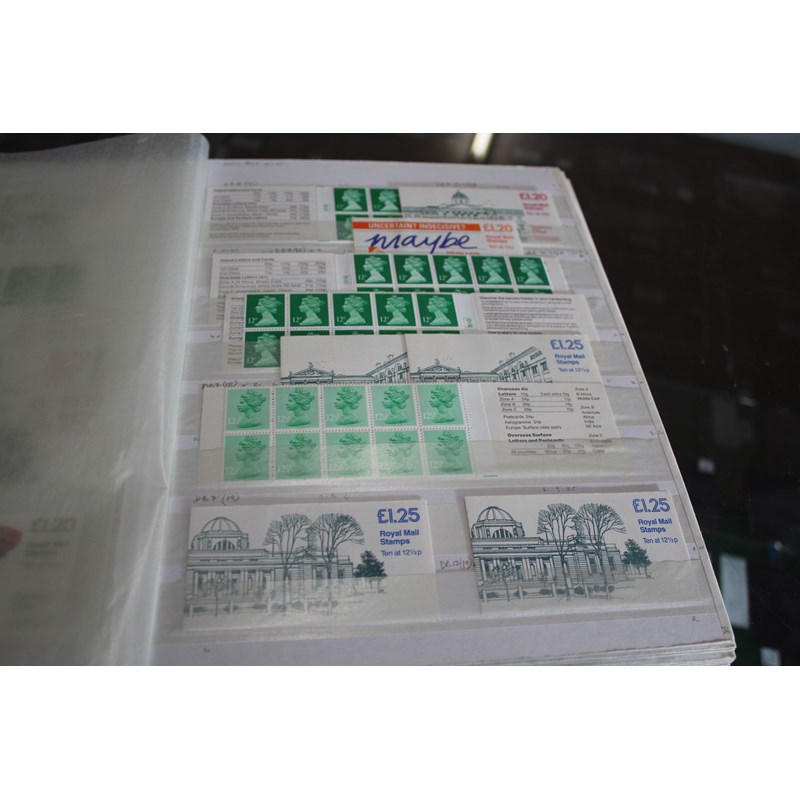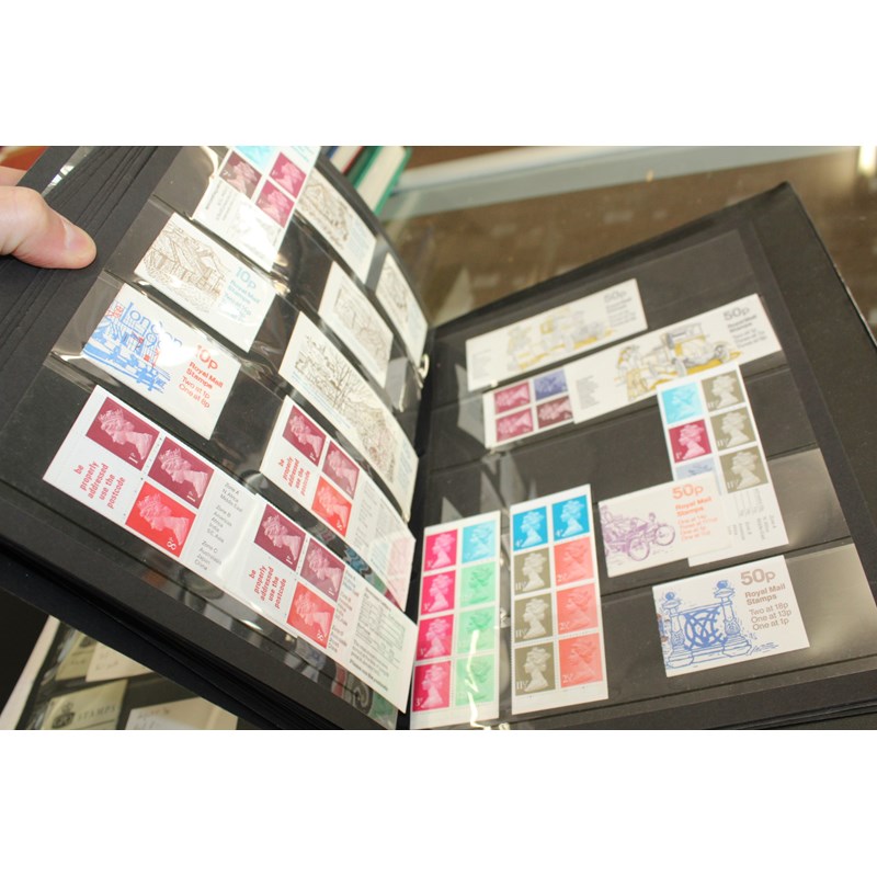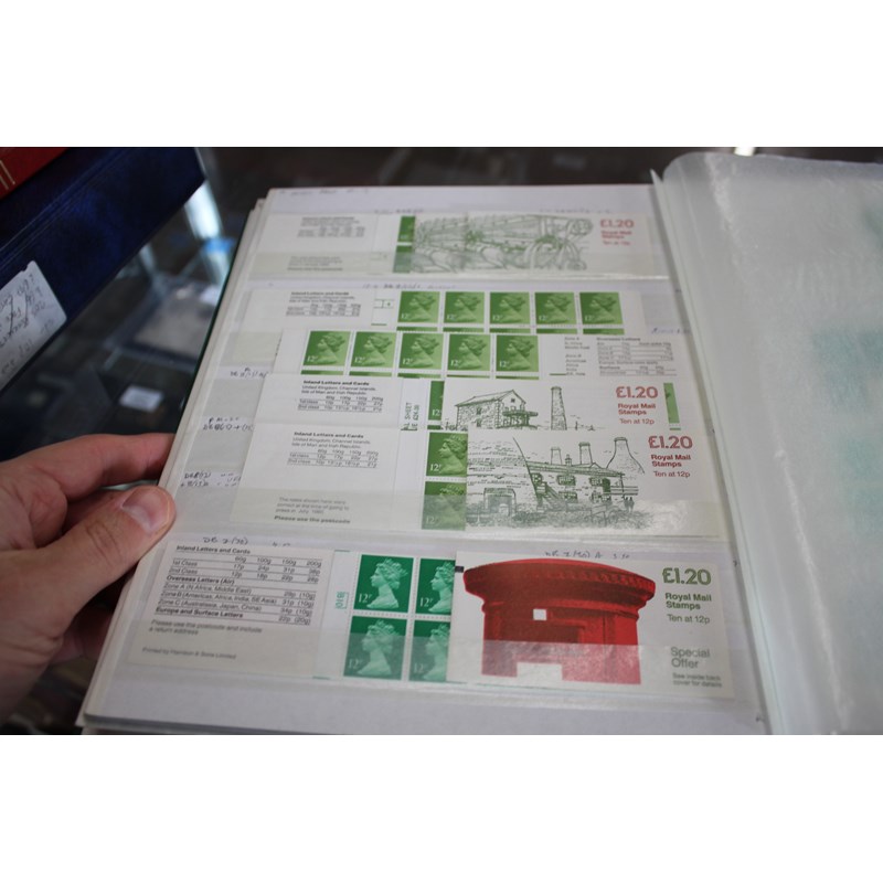 Great Britain stamp booklets in 5 stock books and 1 album, from 1953 2/6 composite booklet, later pre decimal and decimal booklets, folded booklets including 1978 90p Llangollen (Right), window booklets, many with cylinder numbers. (6)