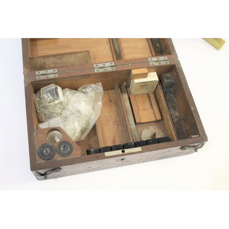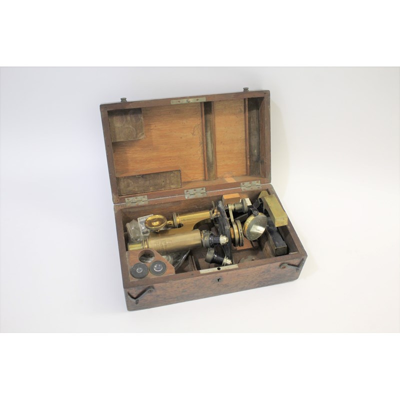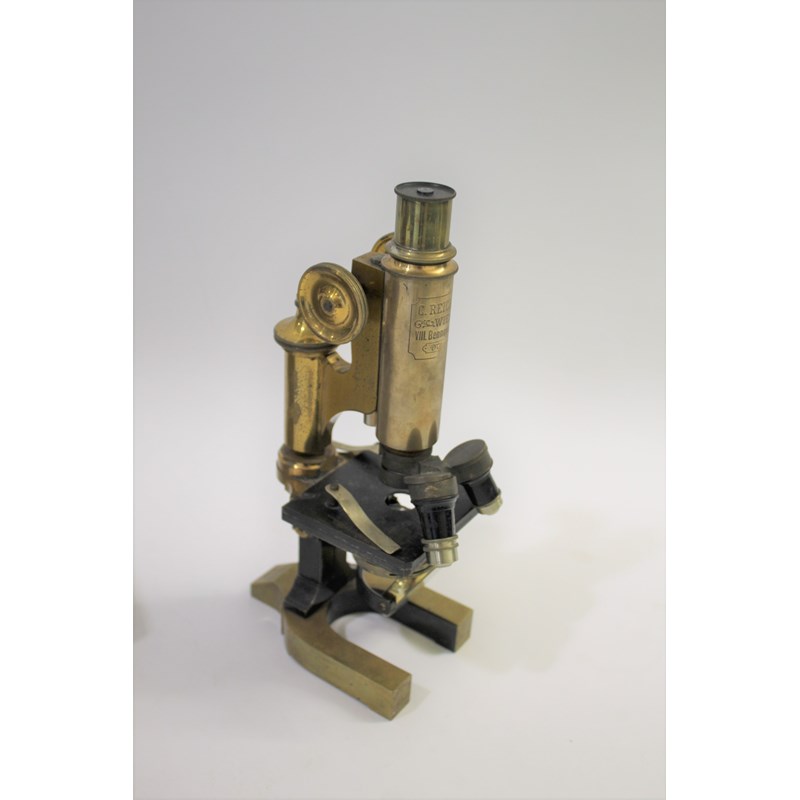 a brass and metal monocular microscope with two lenses, marked C Reichert, Wien, VIII, Bennogasse 26. In a fitted case and with additional lenses.