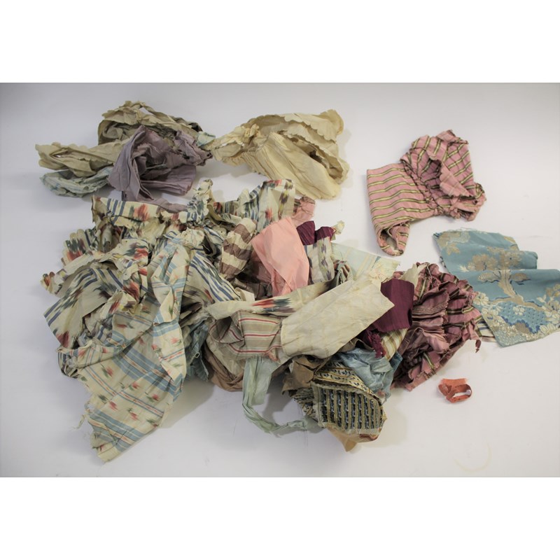 COLLECTION OF 18TH & 19THC COSTUME a collection of costume off cuts, scraps of silk, taffeta and woven silk pieces.