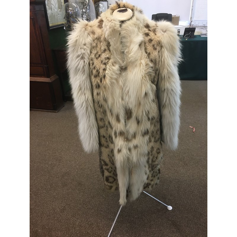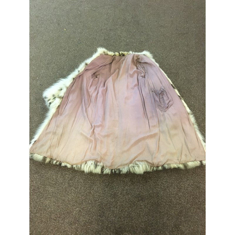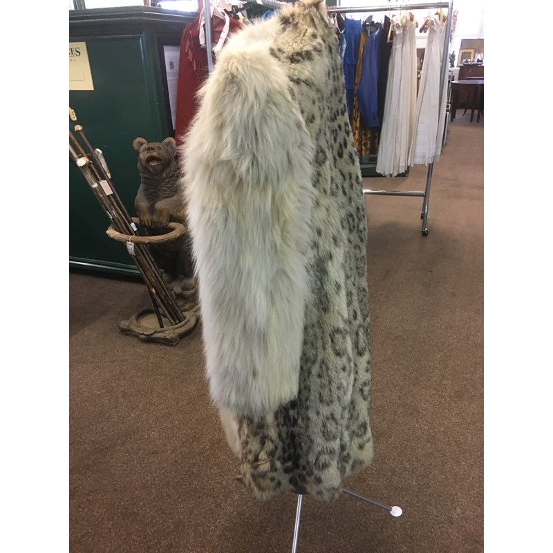 a 1930's Snow Leopard fur coat, lined with a dusky pink crepe and pocket inside. 42ins (107cms) long