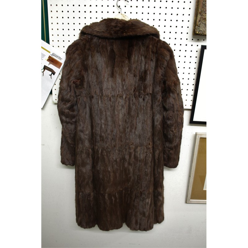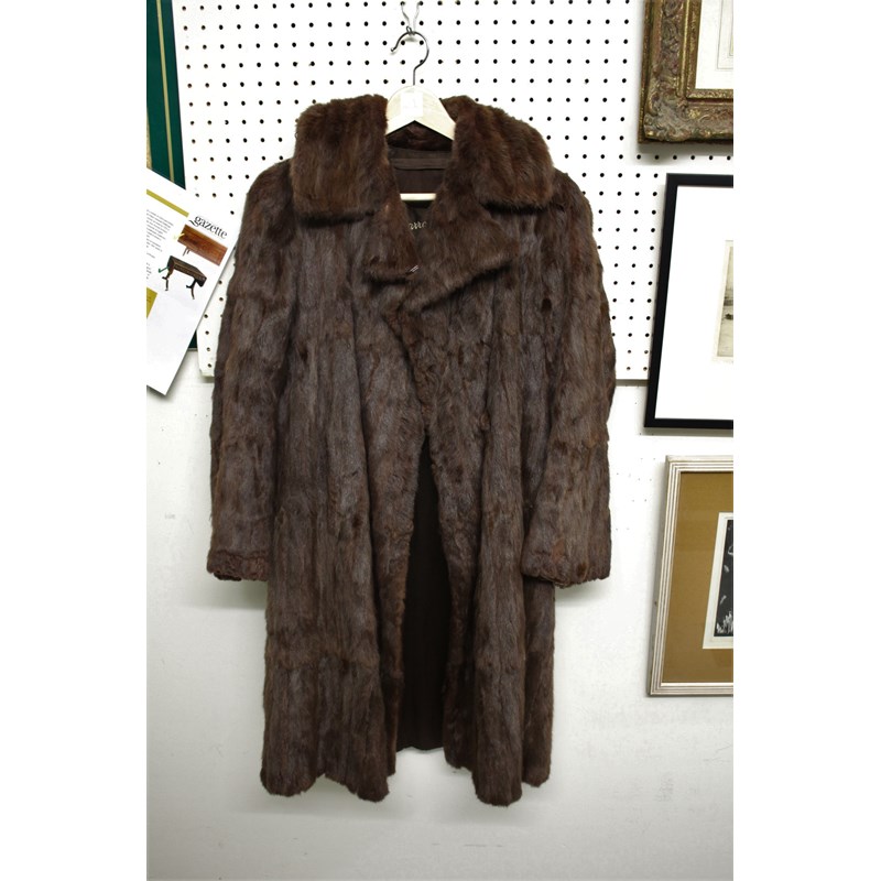 FUR COAT - HARRODS a full length mink fur coat, with two exterior pockets and one inside. With a label for Harrods, London. 107cms long