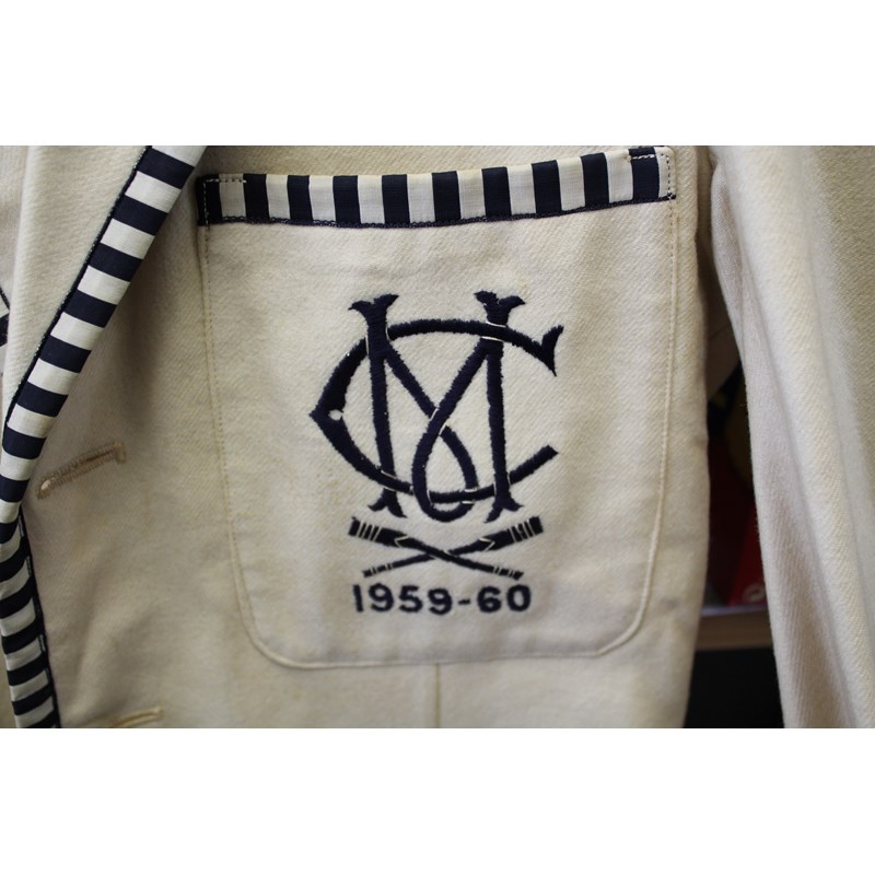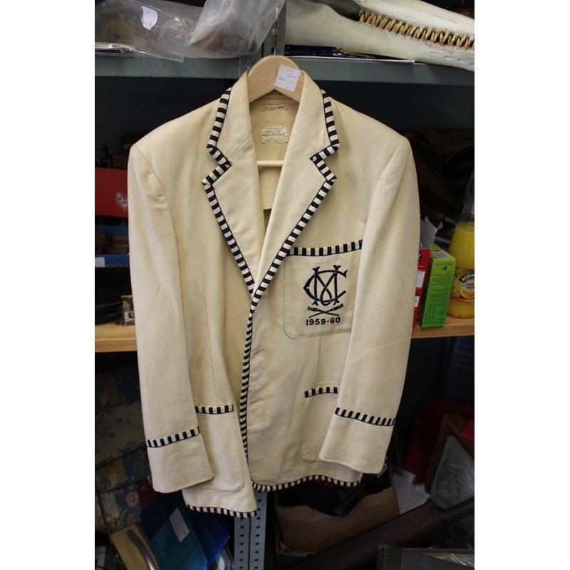 a 1959-60 Rowing jacket and matching boater used by a Ian Anderson. With a label inside the jacket for T C Marsh & Son, Bristol, the boater by Battersby, London, size 6 3/4. (2)