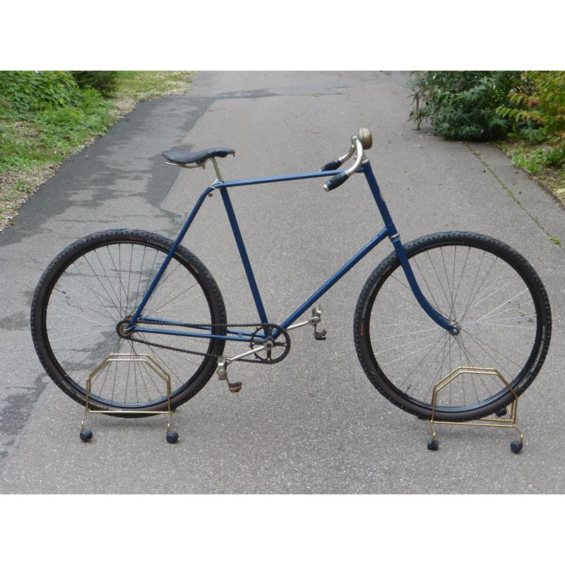 A Pope Mfg Co., 'Columbia Model 38' Bicycle. Dating circa 1894, this blue-enamelled 24-inch frame would be ideal for sprinting and competition work. Originally a cushion-tyred bicycle, but now fitted with 28 x 1¾-inch pneumatics, but retaining its double-roller driving chain, petit competition leather saddle, semi-drop 18-inch handlebars with a Lucas LSD bell fitted, rubber grips and American style rat trap pedals.