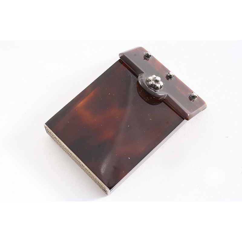 A RARE LATE 19TH CENTURY SILVERGILT MOUNTED TORTOISESHELL VESTA CASE, the flip cover set with rose-cut diamond, unmarked, c.1890; 2" (5 cms) long