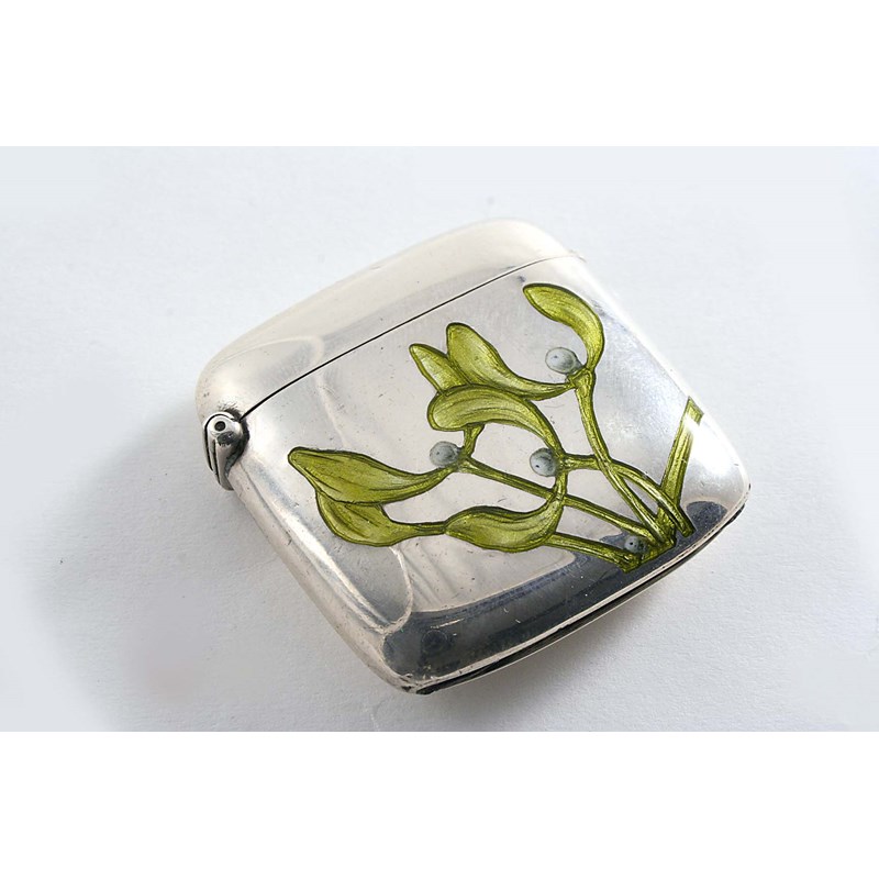 enamelled on the front with mistletoe, by George Adam Scheid, Vienna 1910-20; 1.6" (4.2 cms) long; 1.1 oz