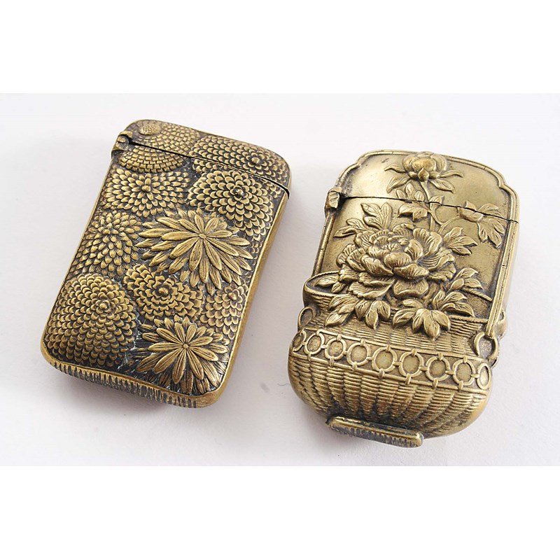 TWO LATE 19TH CENTURY JAPANESE BRASS VESTA CASES;