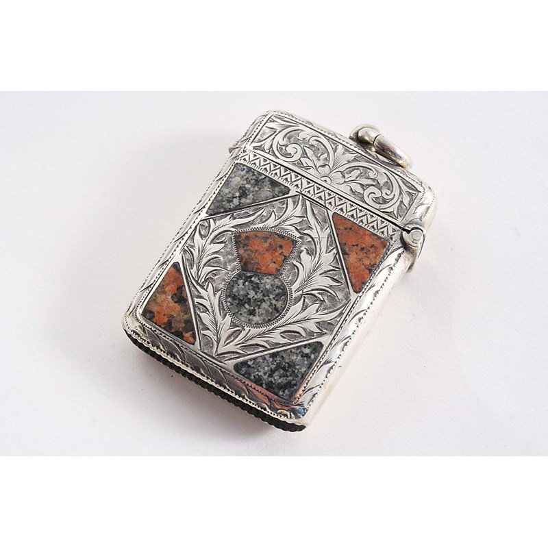 AN EDWARDIAN ENGRAVED "SCOTTISH MARKET" VESTA CASE