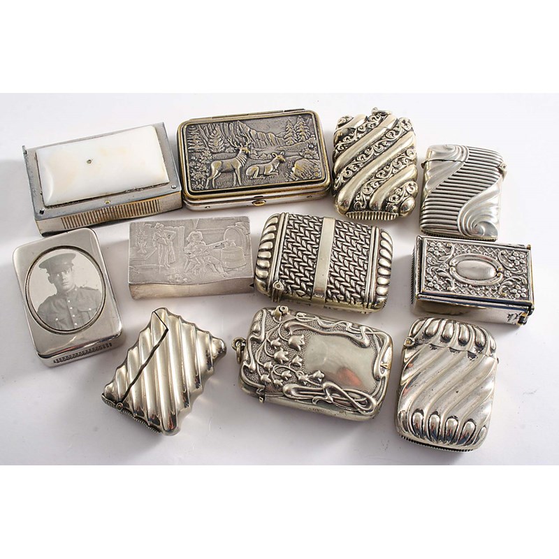 ELEVEN VARIOUS LATE 19TH / EARLY 20TH CENTURY PLATED VESTA CASES (including one with a cigar cutter); the largest one 2.4" (6 cms) long (11)