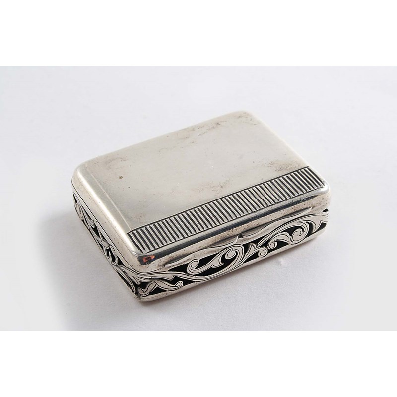 of rectangular form with a striker along the front of the cover, the sides pierced & engraved with scrollwork, by either George Heath or George Howson, London 1899; 1.85" (4.7 cms) long; 1 oz