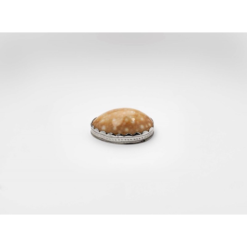 A GEORGE III SMALL SILVER-MOUNTED NATURAL SHELL SNUFF BOX