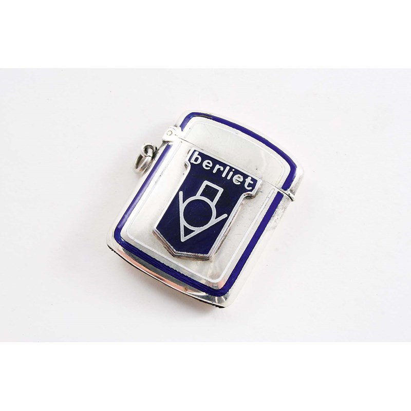 decorated with enamel and an applied badge "Berliet" , maker's mark "J.R", Vienna 1900-1910; 1.75" (4.5 cms) long; 0.9 oz