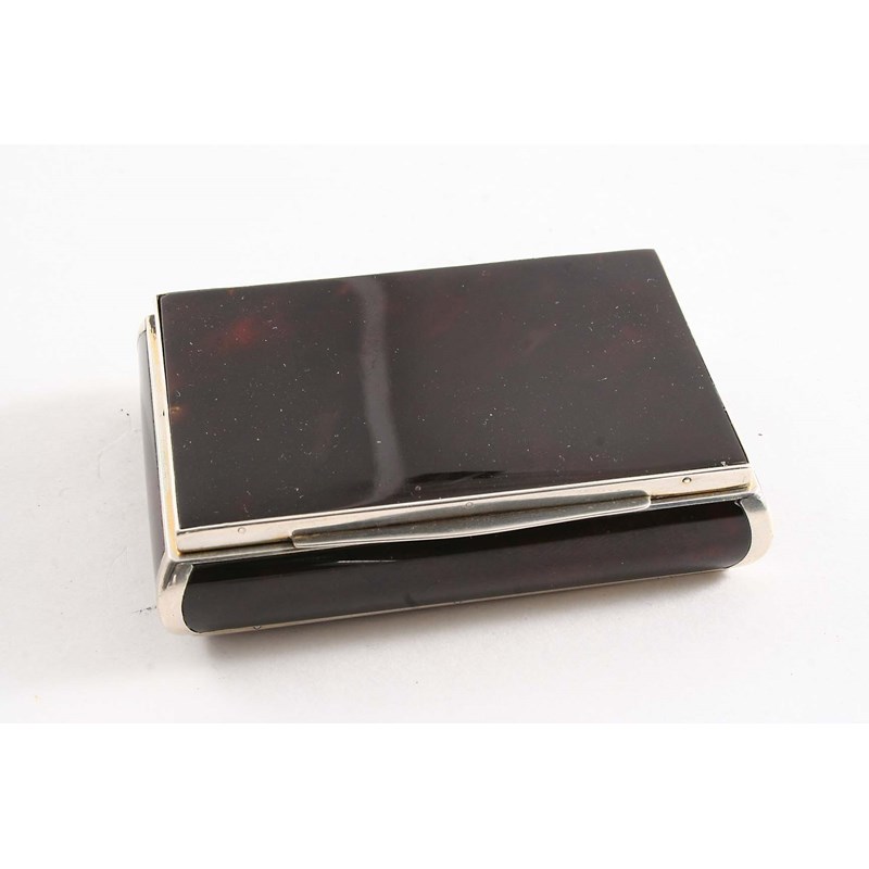 AN EARLY 20TH CENTURY AUSTRO-HUNGARIAN MOUNTED TORTOISESHELL SNUFF BOX with convex sides, maker's mark "J.Z", Vienna 1925-35; 3.1" (8 cms) long; 2.2 oz gross