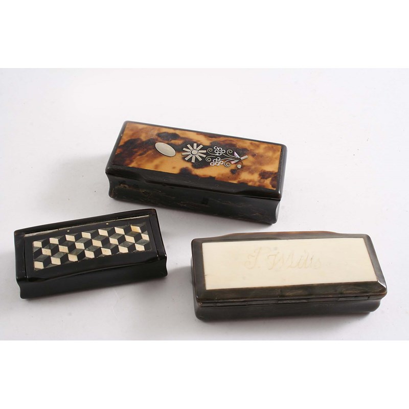 THREE 19TH CENTURY HORN SNUFF BOXES:-