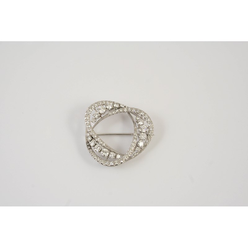 A DIAMOND BROOCH of scrolling form and set overall with graduated circular brilliant-cut diamonds, 3.5cm wide
