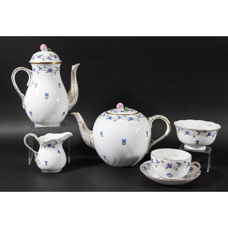 comprising teapot and cover, coffee pot and cover, milk jug, sugar bowl, six teacups and saucers & plates and seven egg cups, blue printed marks (29)