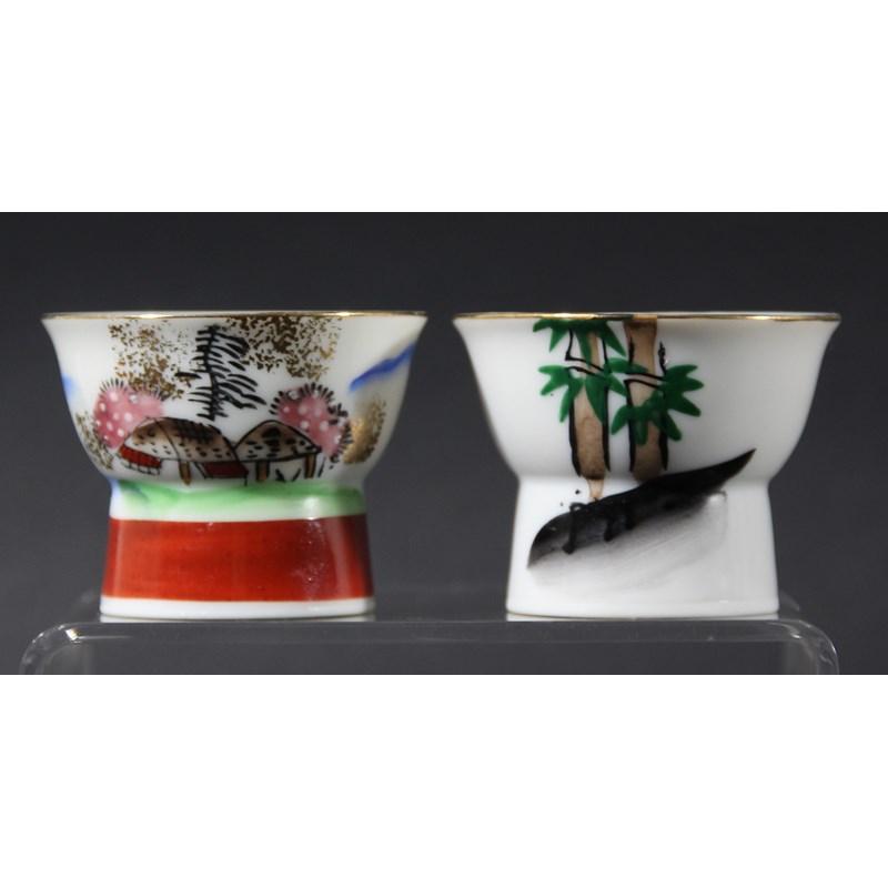 TWO JAPANESE SAKE CUPS, the glass bases enclosing erotic images, diameter 5cm (2)