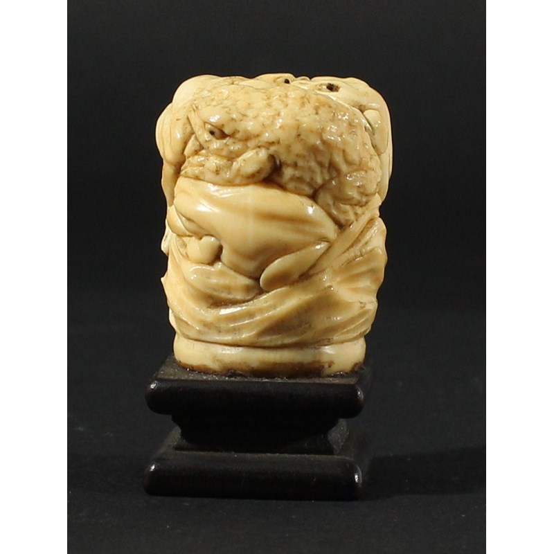 JAPANESE IVORY CANE TOP, Meiji, carved as a knot of toads and frogs, height 4cm