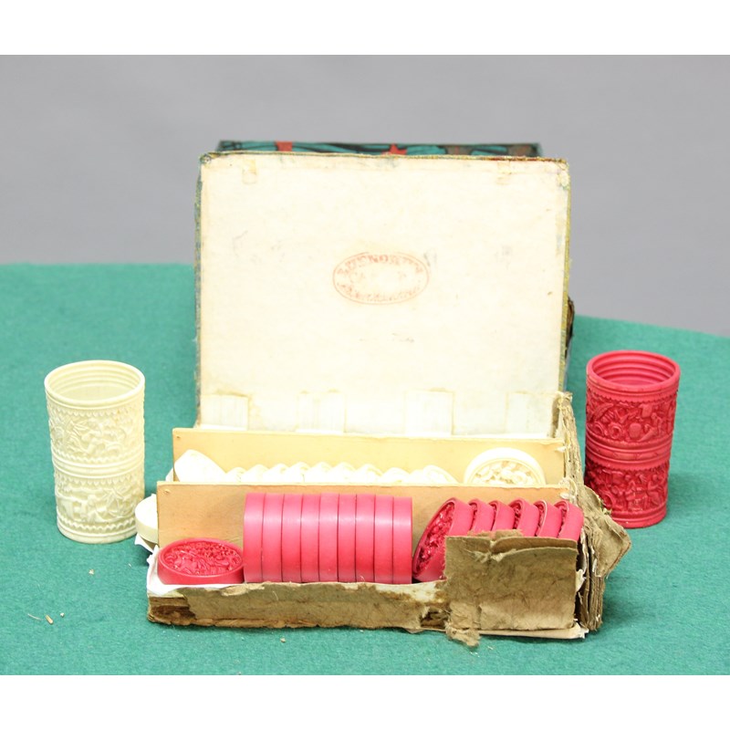 CHINESE CANTON IVORY DRAUGHTS SET,