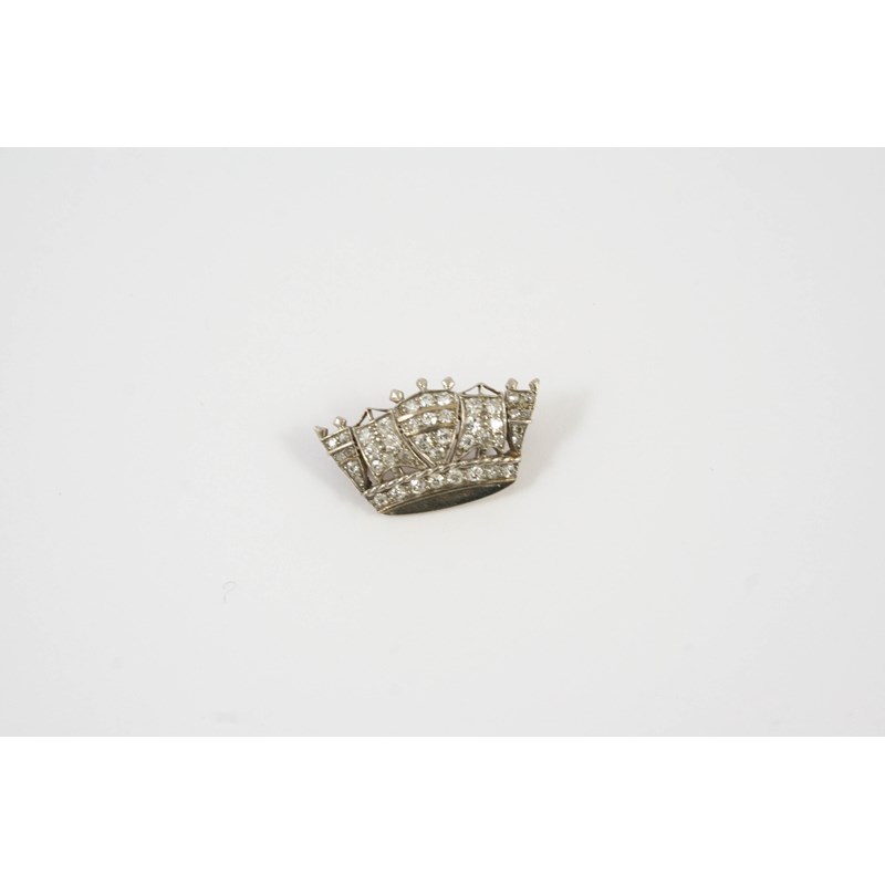 A DIAMOND NAVAL CROWN BROOCH millegrain set overall with graduated single-cut diamonds, in gold, 3cm wide