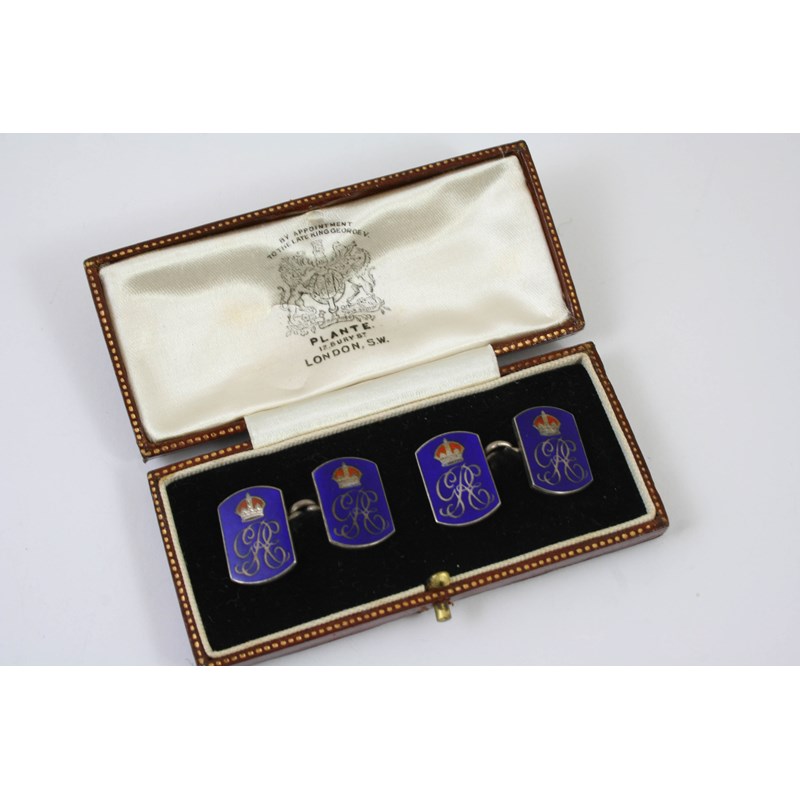 A PAIR OF ENAMEL AND SILVER CUFFLINKS FOR GEORGE VI