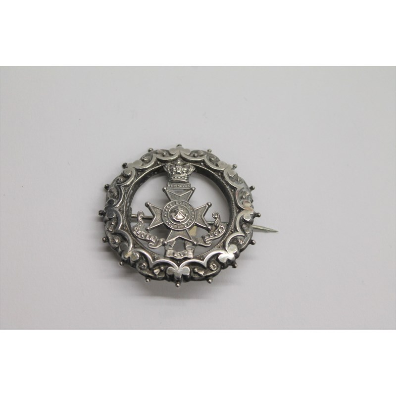 A KINGS ROYAL RIFLE CORPS SWEETHEART BROOCH. Having an Imperial crown with ornate borders, hallmarks for Birmingham 1897, See Illustration