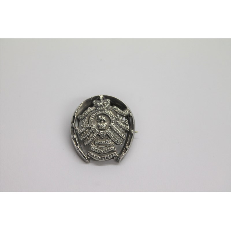 A KINGS ROYAL HUSSARS SWEETHEARTS BROOCH. A silver KRH sweethearts badge hallmarked for Birmingham 1901, with maker R W. A horseshoe back with regimental device and Victorian crown above Battle Honours. See Illustration