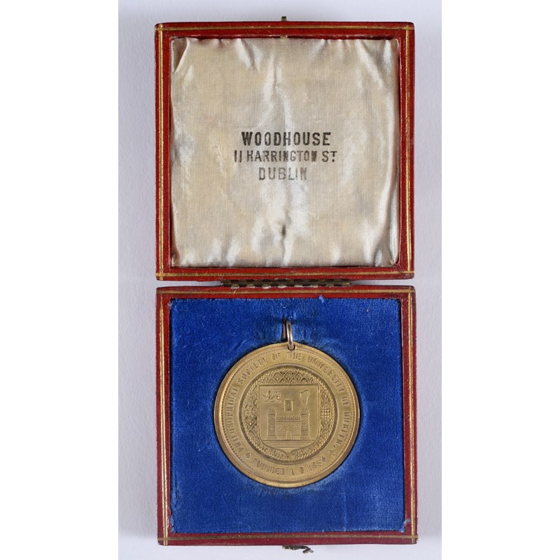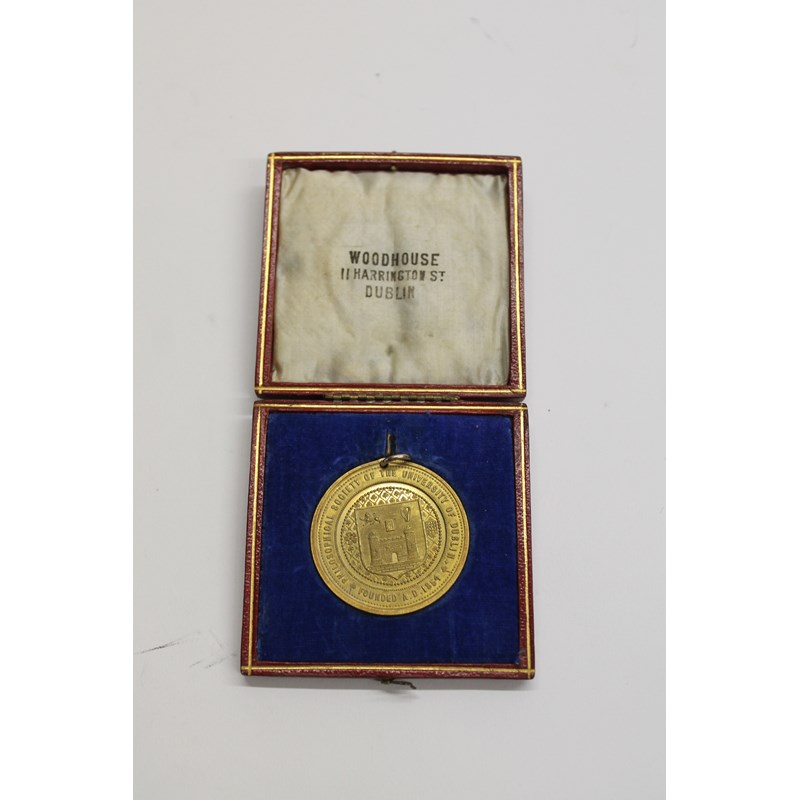 A CASED GOLD UNIVERSITY OF DUBLIN PRIZE MEDAL.