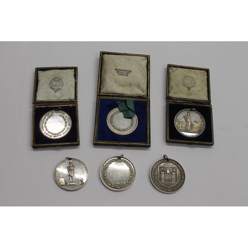 The second with College Coat of Arms front, the reverse engraved William F Stockley. Composition. Session 1882-83. Weight 47.5 grams.