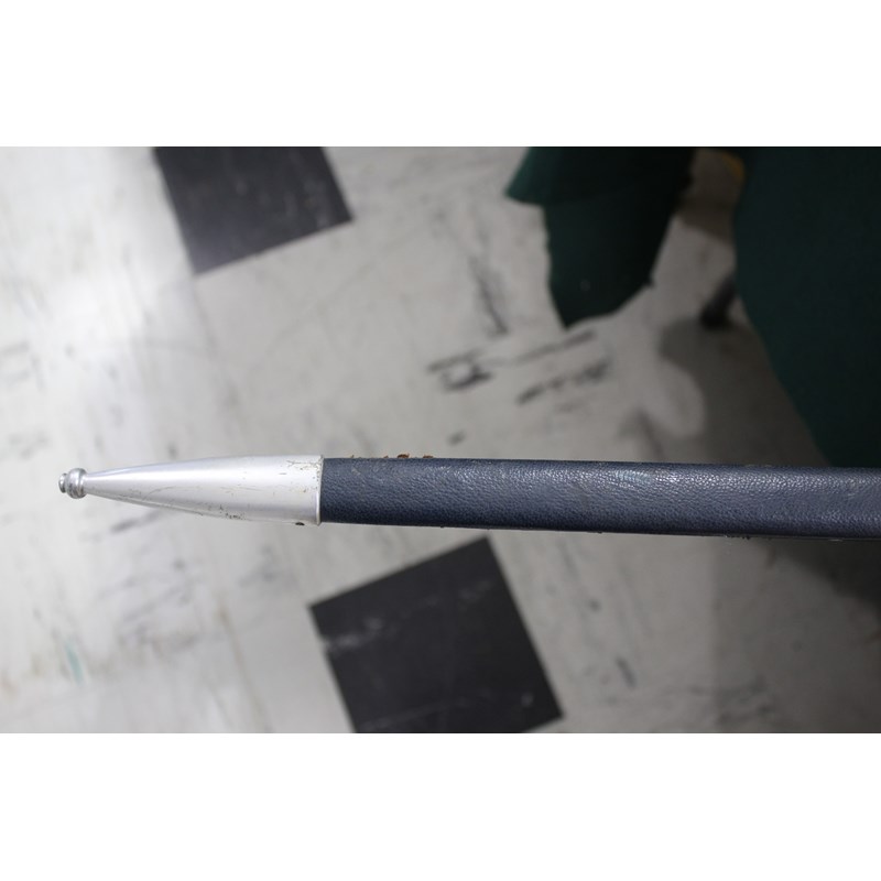a 1934 pattern Officers sword with aluminium pommel and cross guard, the leather grip with twisted metal. Blade with some minor dents to the cutting edge, the scabbard in aluminium and leather and with a belt hook. Blade marked, SMF Solingen. Blade 71cms long