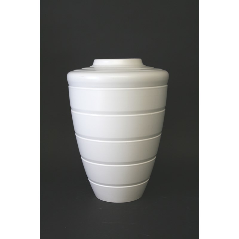 KEITH MURRAY VASE a large vase with horizontal bands in the Moonstone colourway. Marked, KM, Wedgwood of Etruria & Barlaston. 11 1/4ins (28.5cms) high