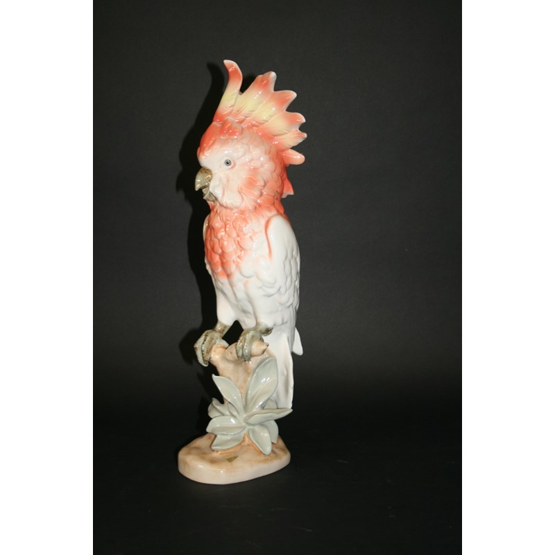 a large figure of a Cockatoo with brightly painted crest. With original sticker and marked underneath Royal Dux, 402, Czech Republic. 16 1/4ins (41cms) high