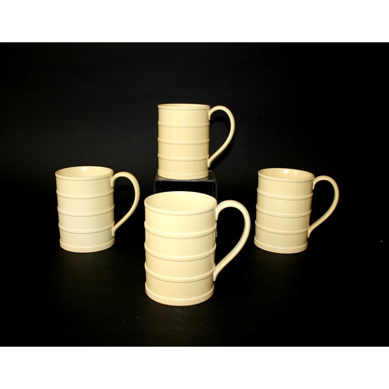 a set of four tankards in the Matt Straw colourway. Each marked, Keith Murray, Wedgwood, Made in England. 4 3/4ins (12cms) high. (4)