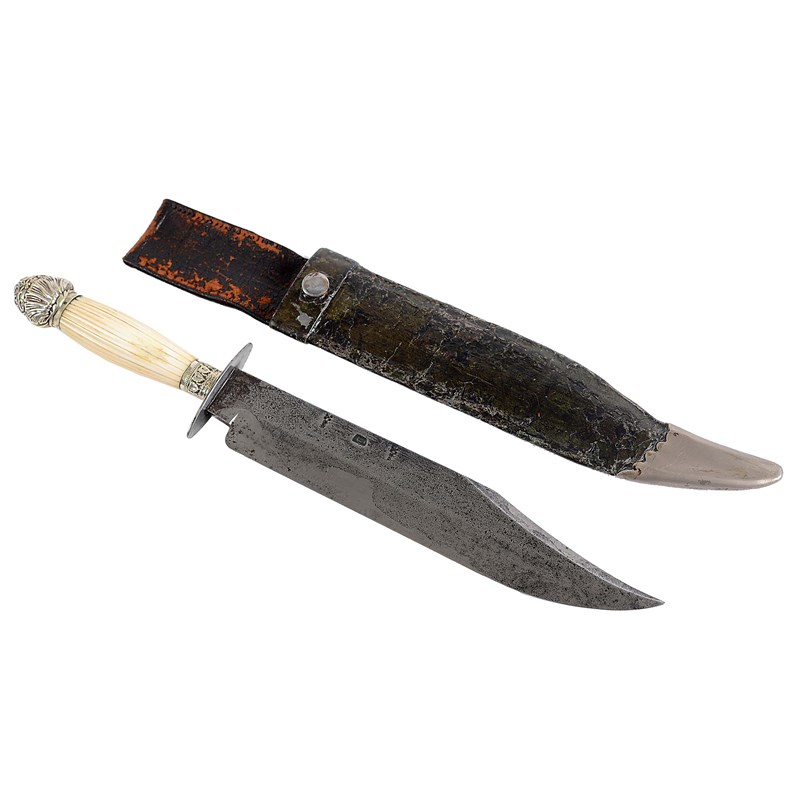 A SILVERED MOUNTS BOWIE KNIFE & SCABBARD.