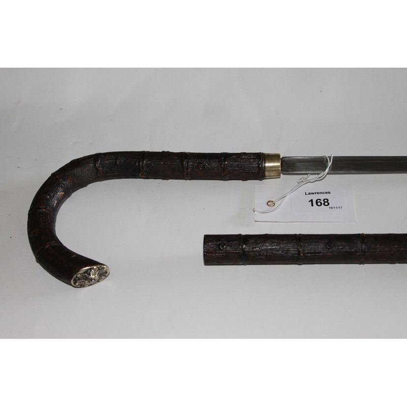 A JAPANESE SWORDSTICK. A Japanese swordstick with 19.1/4" blade, having a short fuller at the guard. In simulated cherry tree bark finish, with a silvered flower design pommel.