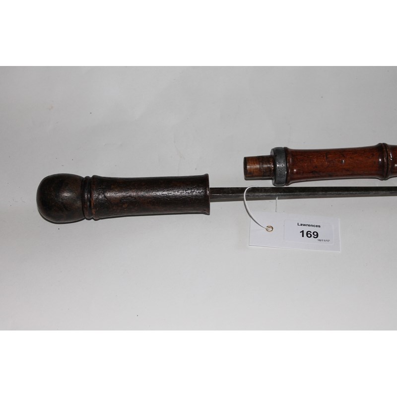 A GERMAN SWORDSTICK. A turn of the century swordstick with cane mounts, having a square form spike blade of 29" length marked Solingen