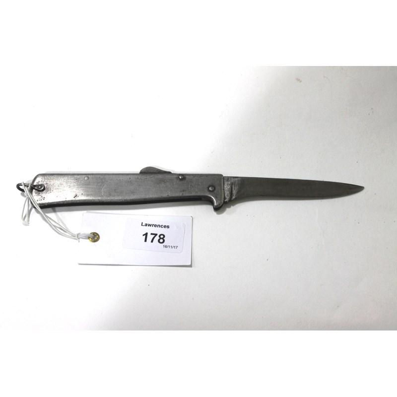 A GERMAN ALL STEEL KNIFE A D R G M marked Mercator lockknife with well used blade of 3.1/2". Overall length of 9".