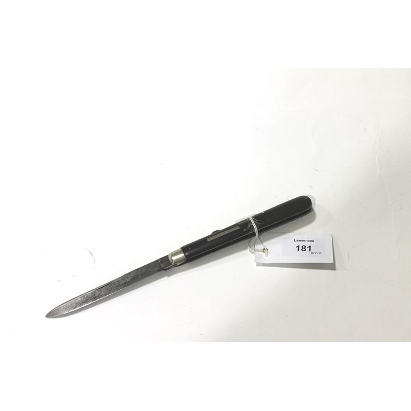 A lock knife with 4.1/2" blade with initials of W R & Co and Wade, Wingfield & Rowbotham as makers. Plain grips with inset escutcheon silver plate, 10.1/4" overall length.