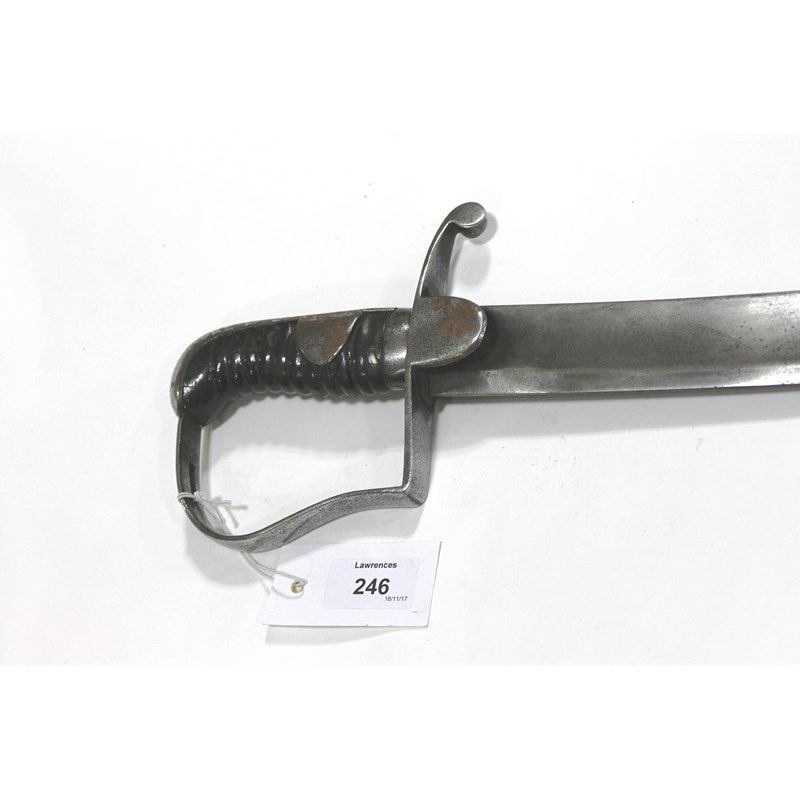 A 1796 pattern Light Cavalry Troopers sword with very clean 33" blade, with three-quarter large single fuller. Marked on the blade spine is Woolley & Deakin, lacking a scabbard.
